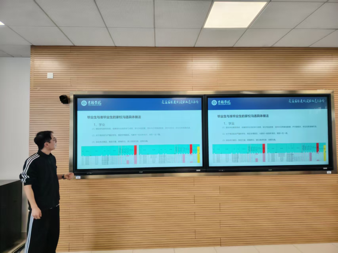 在学业沟通方面,工作室依托教务系统大数据,三院联合为每位毕业生绘制专属“学业健康图谱”:成绩波动、学分缺口、挂科预警一目了然。每一项数据都经过仔细核对,确保准确无误。针对学业困难学生,工作室创新推出“三维诊断法”——辅导员分析学习态度、任课教师诊断知识漏洞、家长反馈家庭环境。同时打造“云端家长会”,共商良策,确保家校沟通的及时性和有效性。