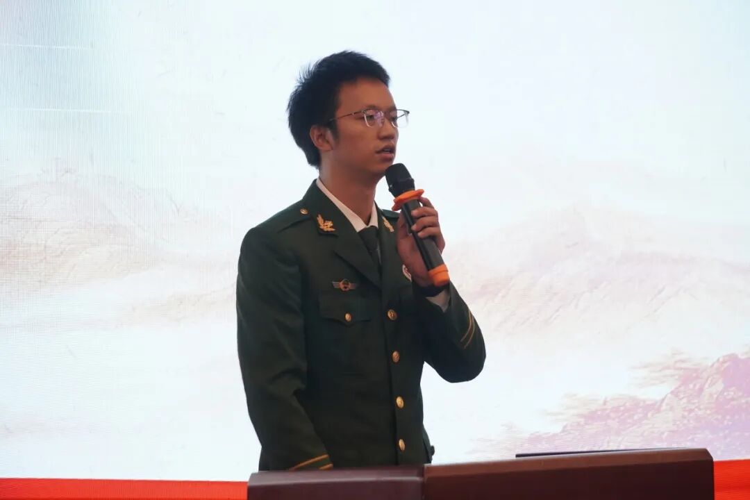 国防军事协会涂文强同学上台分享时,讲述了协会通过军事技能训练、国防知识讲座、红色主题活动等形式,在校园内传播强军思想、培育国防意识的实践故事。他表示,协会将继续以行动为笔,为校园国防教育注入青春活力,吸引更多同学关注国防、热爱国防。