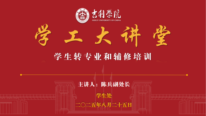 此次培训是吉利学院学工大讲堂系列活动的重要组成部分,体现了学校对学生工作的高度重视,未来,学校将继续加强学工队伍建设,定期开展各类专题培训,不断提升管理服务水平,为学生创造更加良好的成长环境和发展平台。