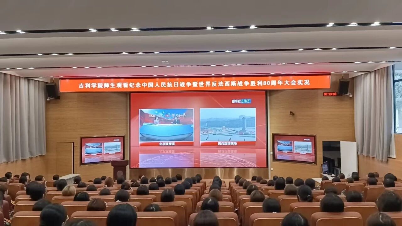 9月3日,吉利学院组织全校师生收看了纪念中国人民抗日战争暨世界反法西斯战争胜利80周年大会直播。