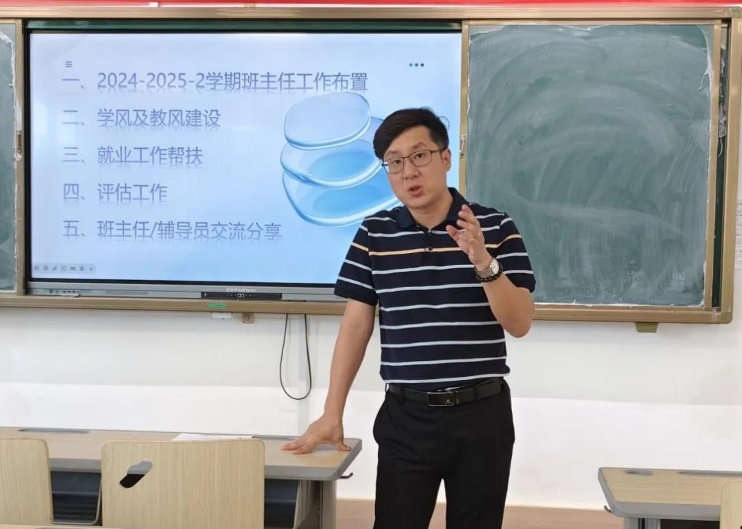 会议围绕学风建设、课堂管理、就业帮扶、评估工作、以及班主任与辅导员经验交流展开。在学风建设方面,孙院长指出,学校通过加强对学生迟到现象和课堂纪律的督查,已取得一定成效,但仍需持续改进。针对课堂管理,他提出具体要求:教师应严格规范学生座位安排,加强手机使用管理,并切实维护课堂秩序,以营造良好的教学环境。在就业帮扶领域,孙院长提到,各位专业老师尤其是班主任应进一步强化就业指导工作,帮助学生提升就业竞争力。
